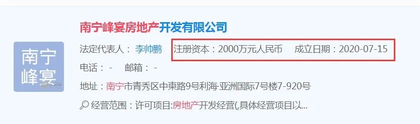 南宁峰宴房地产开发有限公司,该公司成立时间为2020年7月15日,现场显得十分低调,并未透露关于项目和公司的详细信息,该公司的神秘感,也激起了业内普遍好奇!