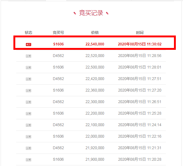 经156轮出价后,S1606号竞买人以最高报价2254万元成功拍下了这宗地块。