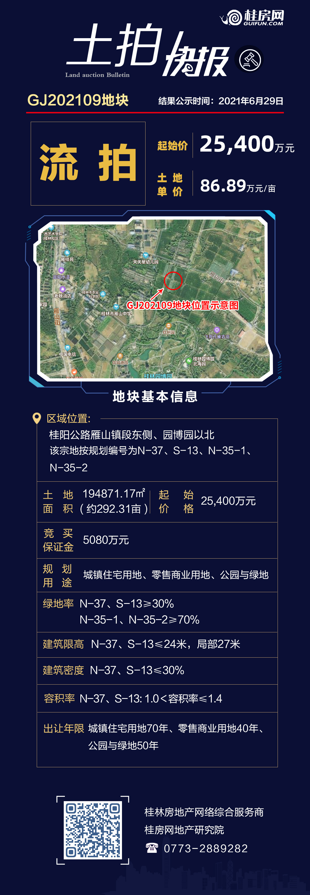 | 2021-06-30 | GJ202109 | 住宅用地 | 雁山 | 桂阳公路雁山镇段东侧、园博园以北 |