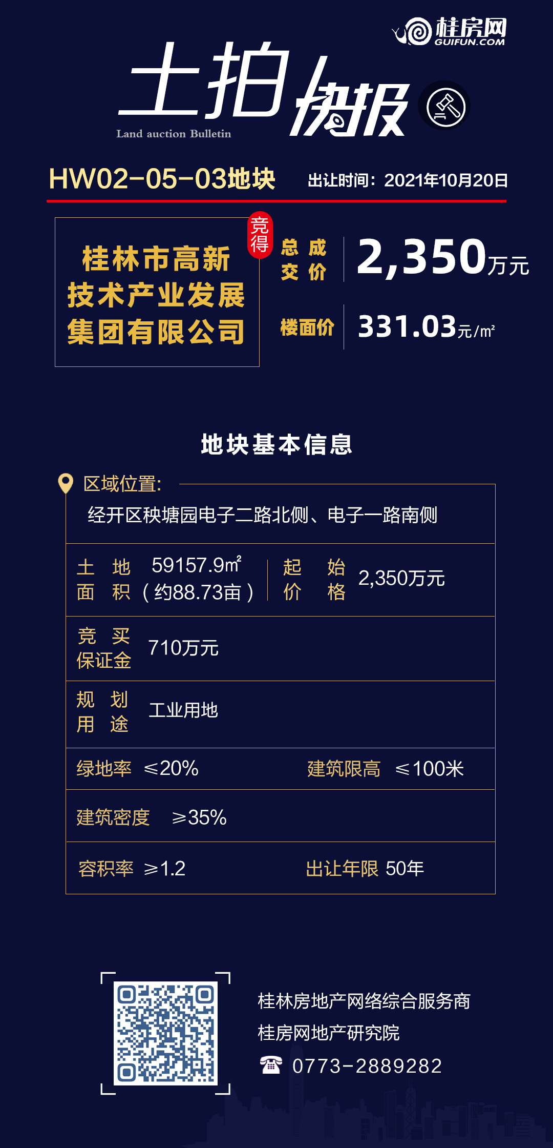 | 2021-10-20 | HW02-05-03 | 工业用地 | 临桂 | 经开区秧塘园电子二路北侧、电子一路南侧 |