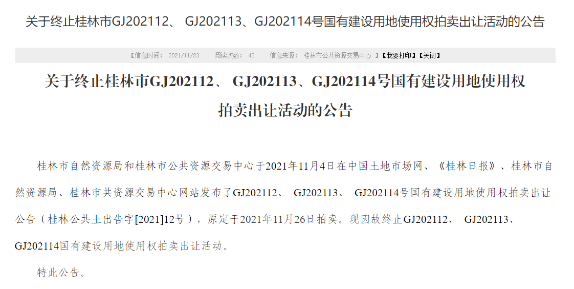 11月4日,桂林市自然资源局发布公告,以拍卖方式出让3(幅)地块的国有土地使用权。