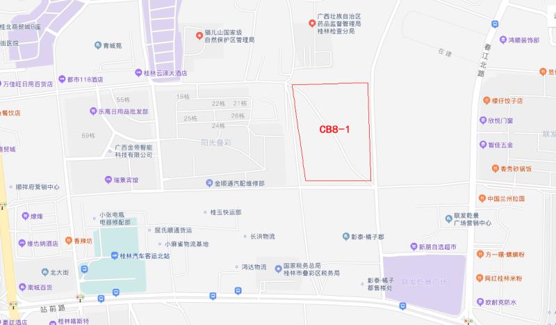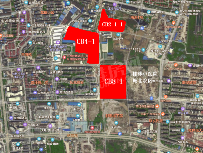 GJ202103地块(CB4-1地块)位于阳光叠彩小区北面、桂林食品药品检验所西面,与GJ202112地块(CB2-1-1地块)相距不远。