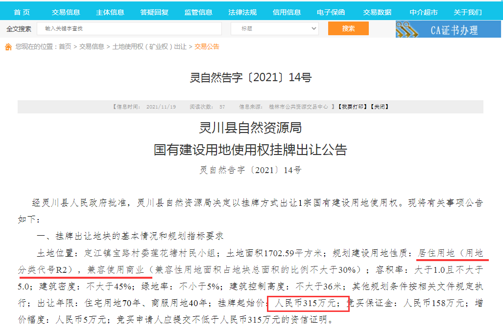 11月19日,桂林市公共资源交易中心网站显示,临桂、灵川又将有住宅用地挂牌出让。