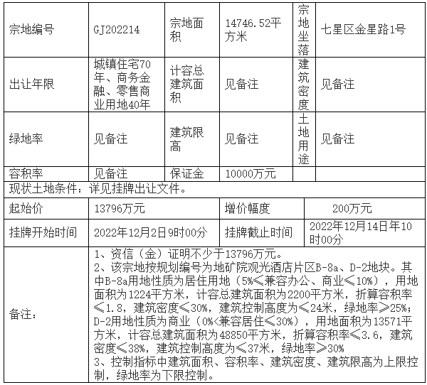 | 2022-12-14 | GJ202214 | 住宅用地 | 七星 | 七星区金星路1号 |